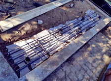 После того, как работа была проведена, клиент посчитал, что в задней части места захоронения требуется дополнительное укрепление. Мы вкрутили пять дополнительных свай, сварили новую сетку и залили ещё одну площадку, которая будет являться основанием для памятников.